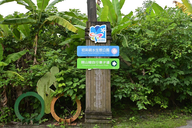 我們一路騎到看到這個指標。照著往右行沒多久,遇見幾條大狗坐在路中央。我見狀立即折返,改繞另外的路。實在是怕被狗追。還好也一樣能接到我們要去的初英自行車道。